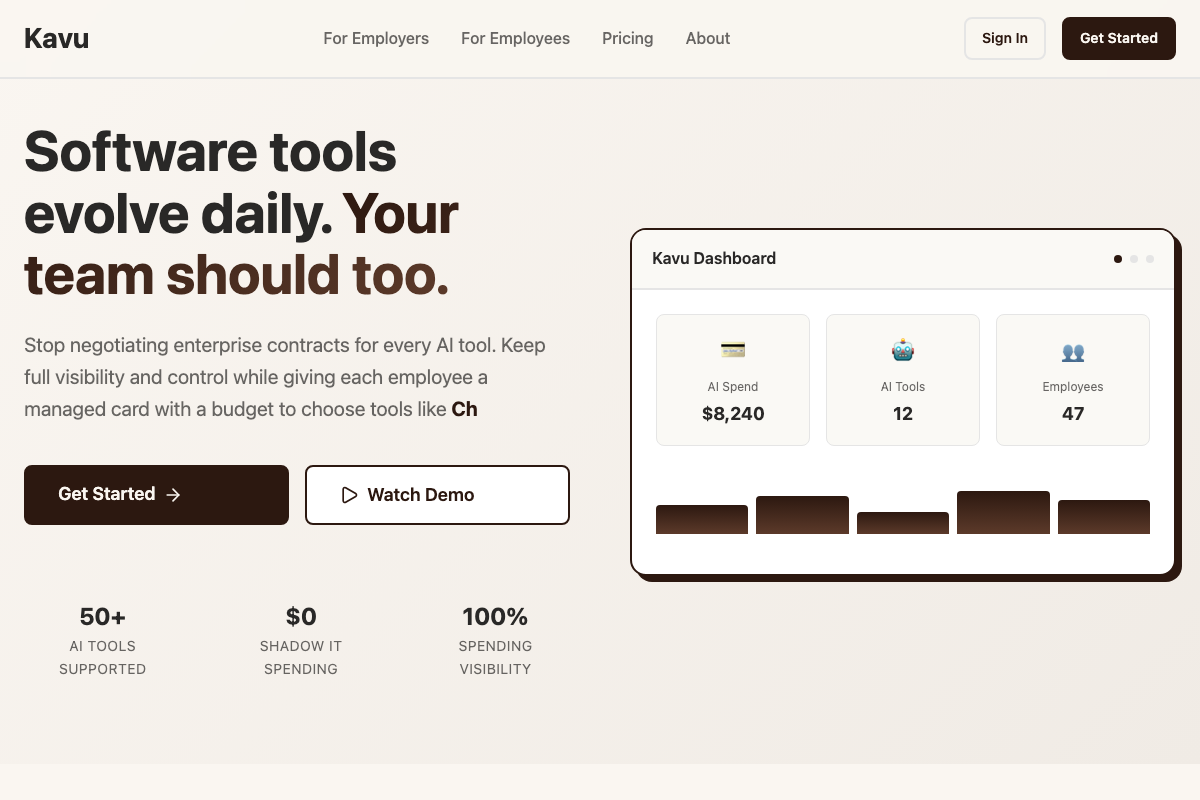 - Kavu, a Chrome extension and dashboard for managing corporate expenses. Full stack: React frontend, Node backend, Chrome extension, marketing site, deployed to Vercel and Railway.